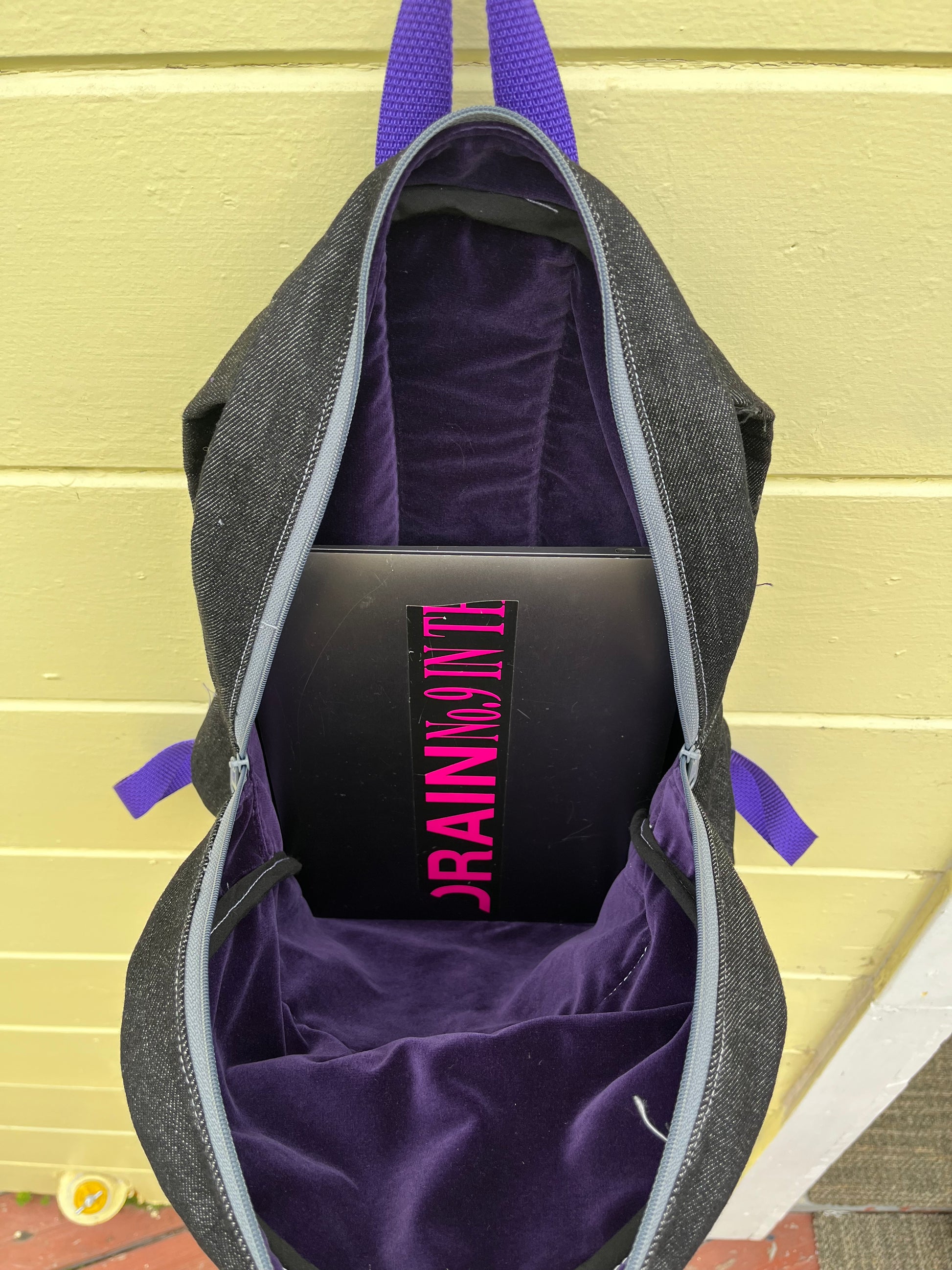 BACKPACK IS ALSO VELVET LINED SO ALL UR STUFF STAYS NICE AND COZY A HAS BIAS TAPE AROUND THE SEAMS FOR A CLEAN FINISH