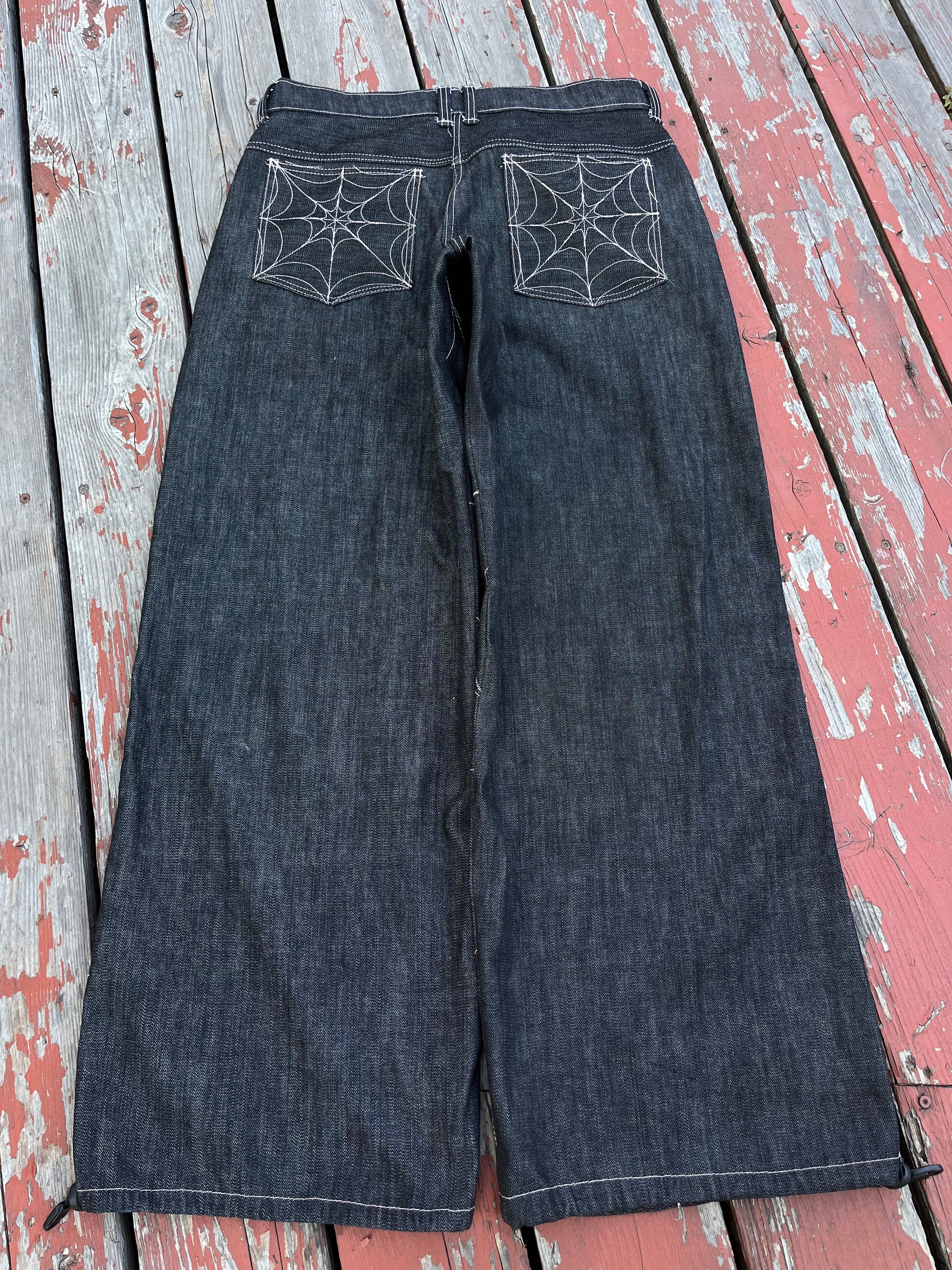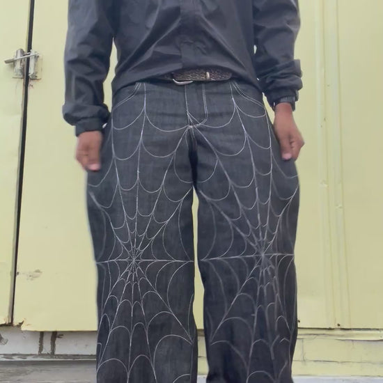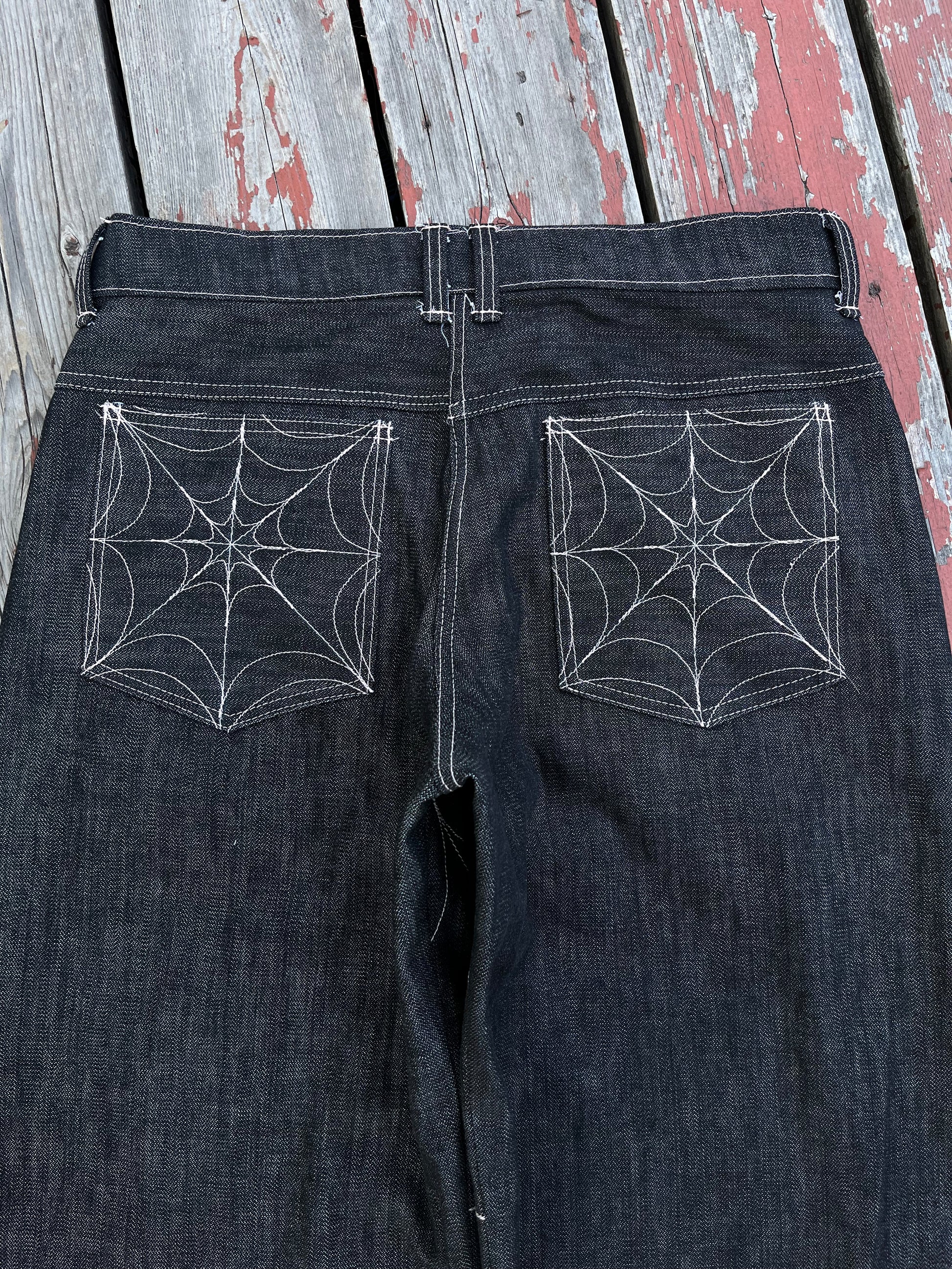 the spiderweb is stitched on using a heavy duty top stitching thread so it will be visible from a distance